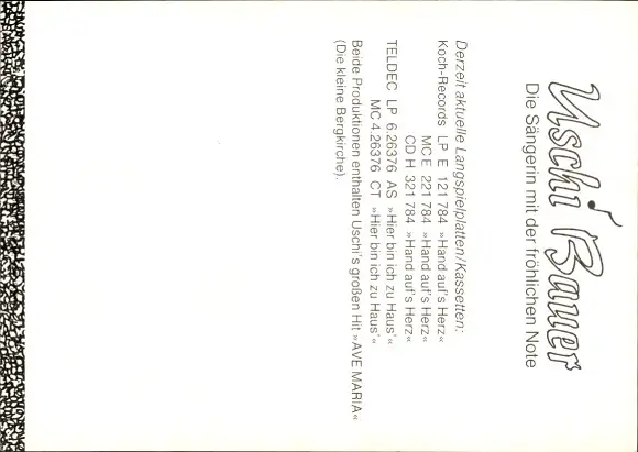 Ak Sängerin Uschi Bauer, Portrait, Autogramm