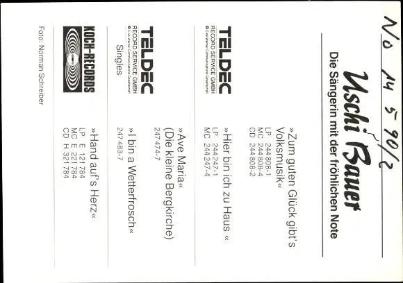 Ak Sängerin Uschi Bauer, Portrait, Autogramm