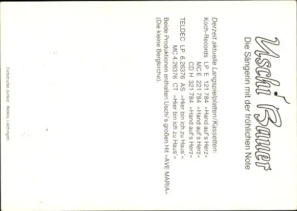 Ak Sängerin Uschi Bauer, Portrait, Autogramm