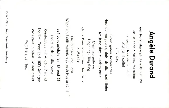 Ak Sängerin und Schauspielerin Angèle Durand, Portrait, Electrola, Autogramm