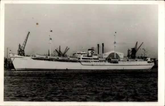 Ak Saigon Cochinchine Vietnam, 黑白照片,一艘船停靠在港口。