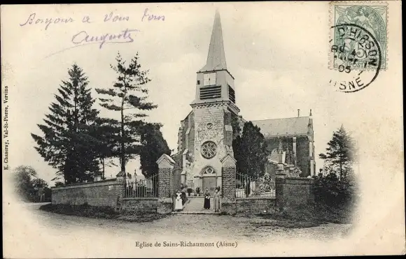 Ak Sains-Richaumont Aisne, L’Eglise
