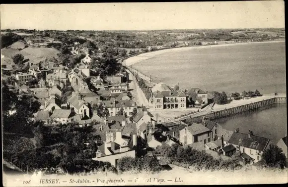 Ak Saint Aubin Kanalinsel Jersey, Vue generale, General View