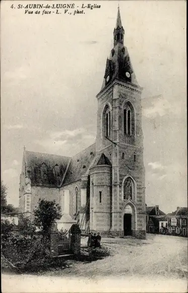 Ak Saint Aubin de Luigné Maine et Loire, L'Eglise, Vue de face