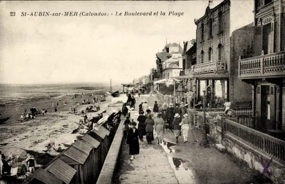 Ak Saint Aubin sur Mer Calvados, Boulevard, Strand