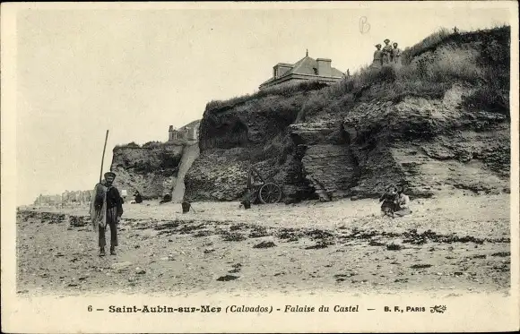 Ak Saint Aubin sur Mer Calvados, Falaise du CAstel
