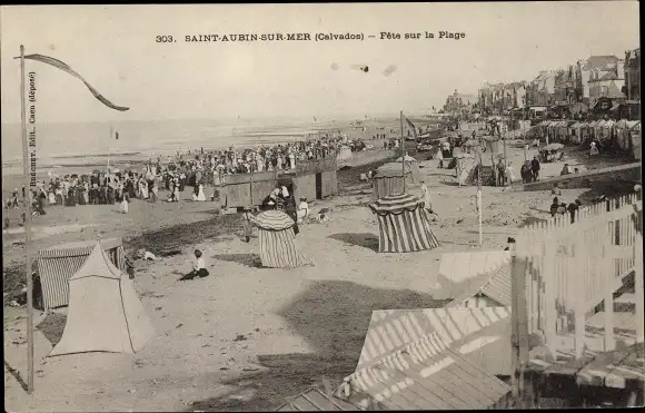 Ak Saint Aubin sur Mer Calvados, Fête sur la Plage