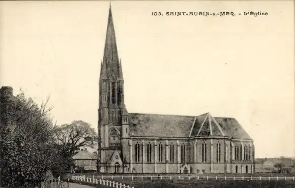 Ak Saint Aubin sur Mer Calvados, Kirche