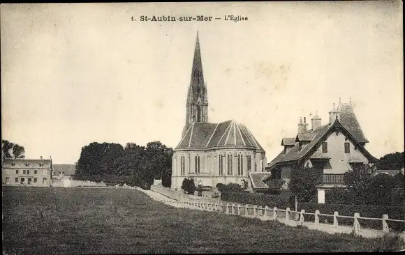 Ak Saint Aubin sur Mer Calvados, L´Église