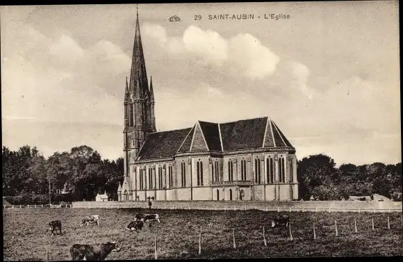 Ak Saint Aubin sur Mer Calvados, L´Église