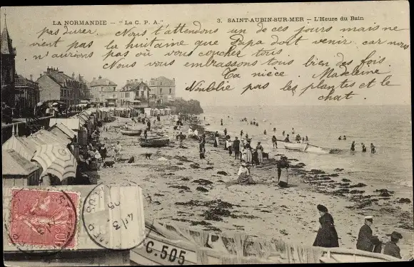 Ak Saint Aubin sur Mer Calvados, L'Heure du Bain