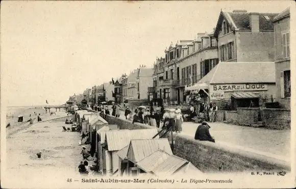 Ak Saint Aubin sur Mer Calvados, La Digue-Promenade