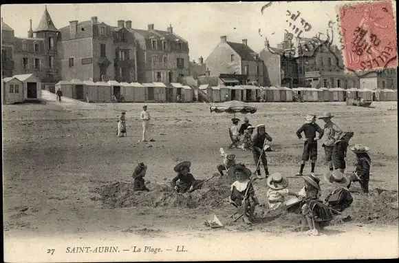 Ak Saint Aubin sur Mer Calvados, La Plage