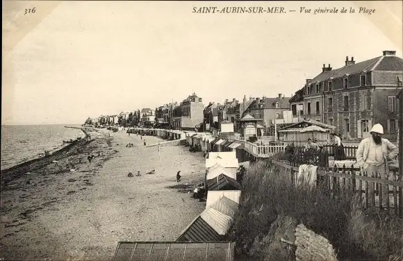 Ak Saint Aubin sur Mer Calvados, La Plage