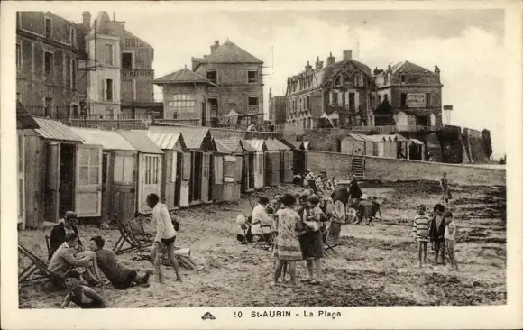 Ak Saint Aubin sur Mer Calvados, La Plage