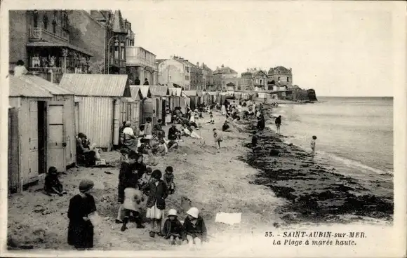 Ak Saint Aubin sur Mer Calvados, La Plage a maree haute