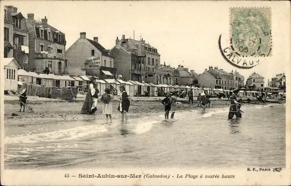 Ak Saint Aubin sur Mer Calvados, La Plage a maree haute