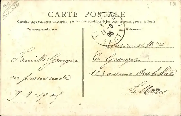 gelaufen 1905, Eckknicke, fleckig, sonst guter Zustand