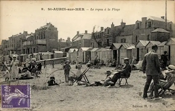Ak Saint Aubin sur Mer Calvados, Le repos a la Plage