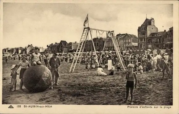 Ak Saint Aubin sur Mer Calvados, Plaisiers d'enfants sur la plage
