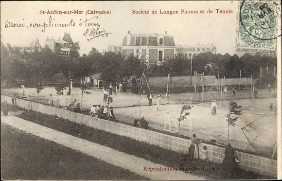 Ak Saint Aubin sur Mer Calvados, Societe de Longue Paume et de Tennis
