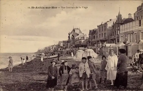 Ak Saint Aubin sur Mer Calvados, Strand