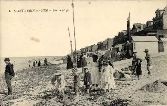 Ak Saint Aubin sur Mer Calvados, Strand