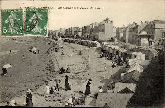 Ak Saint Aubin sur Mer Calvados, Strand, la Digue