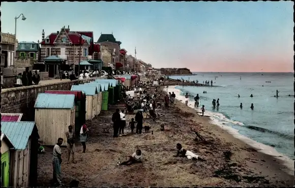 Ak Saint Aubin sur Mer Calvados, Strandpartie