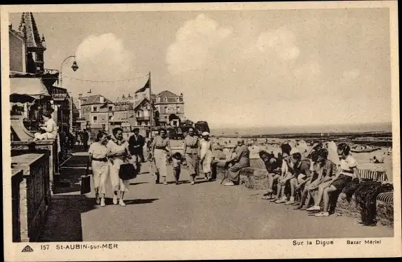 Ak Saint Aubin sur Mer Calvados, sur la Digue, Bazar Mériel