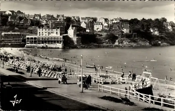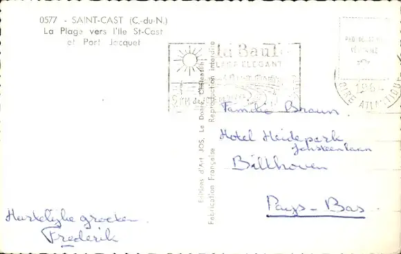 Ak Saint Cast Cotes d'Armor, La Plage vers l'ile St. Cast, Port Jacques