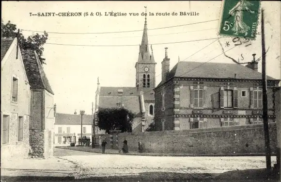 Ak Saint Chéron Essonne, L'Eglise vue de la route de Baville