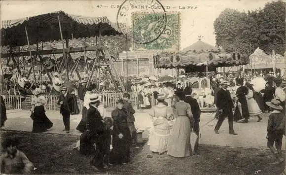 Ak Saint Cloud Hauts de Seine, Festplatz, Karussell, Schiffsschaukel