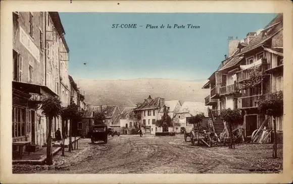 Ak Saint Côme de Fresné Calvados, Place de la Poste Téron