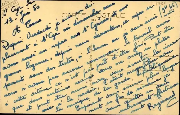 ungelaufen, datiert 1950, Rückseite beschrieben, sehr guter Zustand