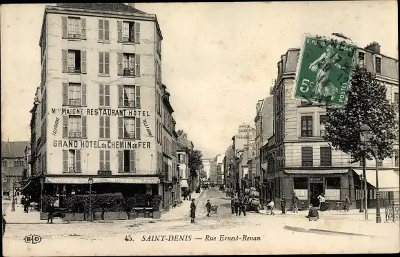 Ak Saint Denis Seine Saint Denis, Rue Ernest Renan, Grand Hotel du Chemin de Fer