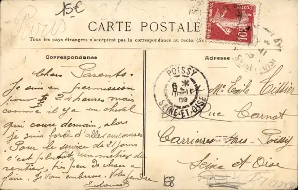 Zustand, siehe Scan, gelaufen, 1909 - ca 14 cm X 9 cm