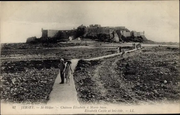 Ak Saint Helier Kanaliniseln, Château Élisabeth à Marée basse