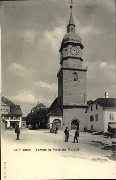 Ak Saint Imier Kanton Bern, Temple et Place du Marché
