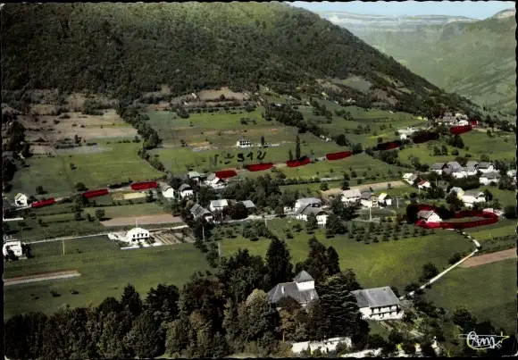 Ak Saint Jean d'Arvey Savoie, Vue generale aerienne