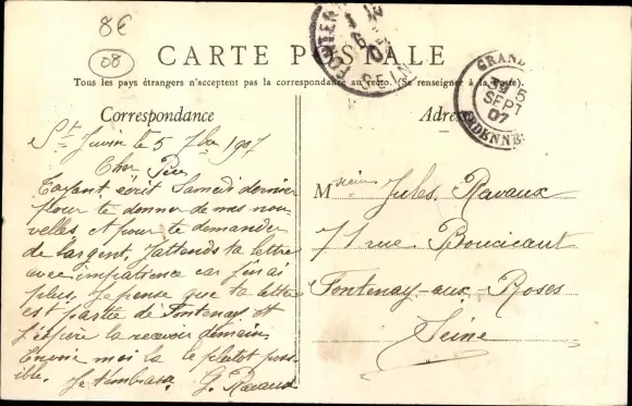 Zustand, siehe Scan, gelaufen, 1907 - ca 14 cm X 9 cm
