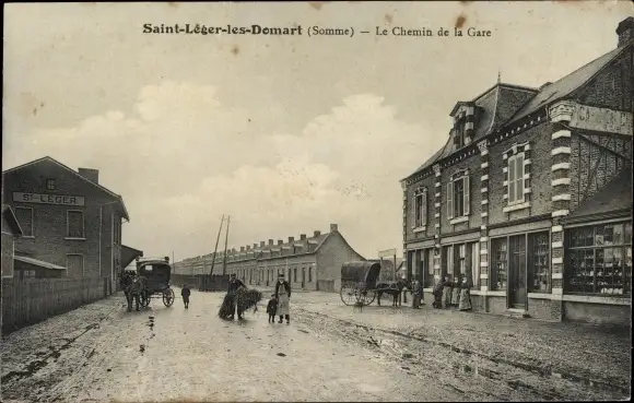 Ak Saint Léger les Domart Somme, Le Chemin de la Gare