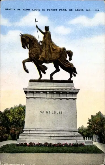 Ak Saint Louis Missouri USA, Statue von Saint Louis Forest Park