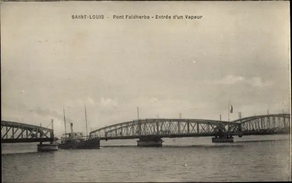 Ak Saint Louis Senegal, Pont Faidherbe, Einfahrt eines Dampfers