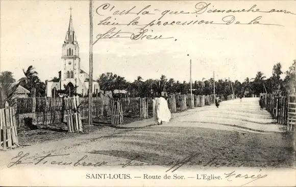 Ak Saint Louis Senegal, Route de Sor, Die Kirche