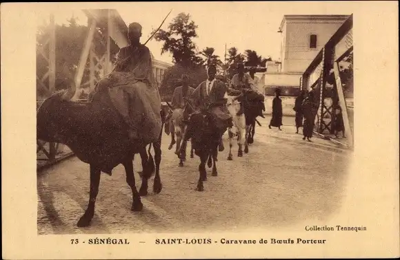 Ak Saint Louis Senegal Senegal, Karawane der Trägerochsen