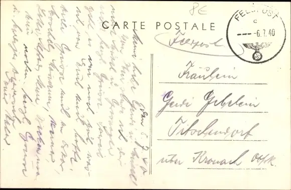 Zustand, siehe Scan, gelaufen, 1940 - ca 14 cm X 9 cm