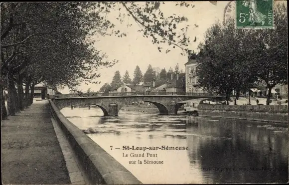 Ak Saint Loup sur Semouse Haute Saône, Le Grand Pont sur la Semouse