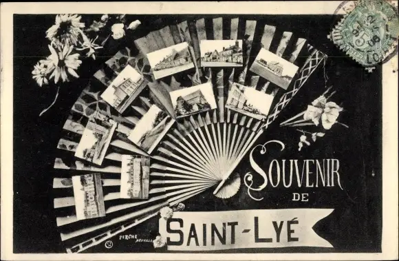 Ak Saint Lyé Loiret, Fächer, Blumen, Kirche, Gebäude