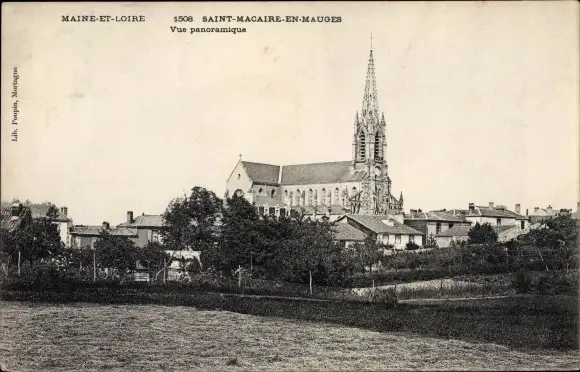 Ak Saint Macaire en Mauges Maine et Loire, Vue panoramique, Eglise
